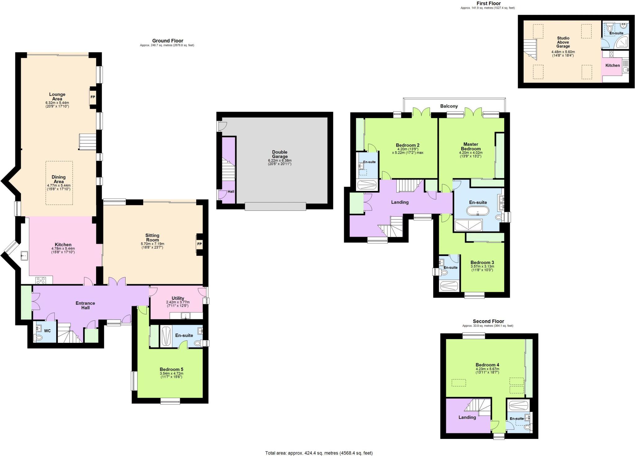 An exquisite detached lakeside home with stunning views on three floors, five double en-suite bedrooms. A double garage with home office/studio above, finished to a high specification.
