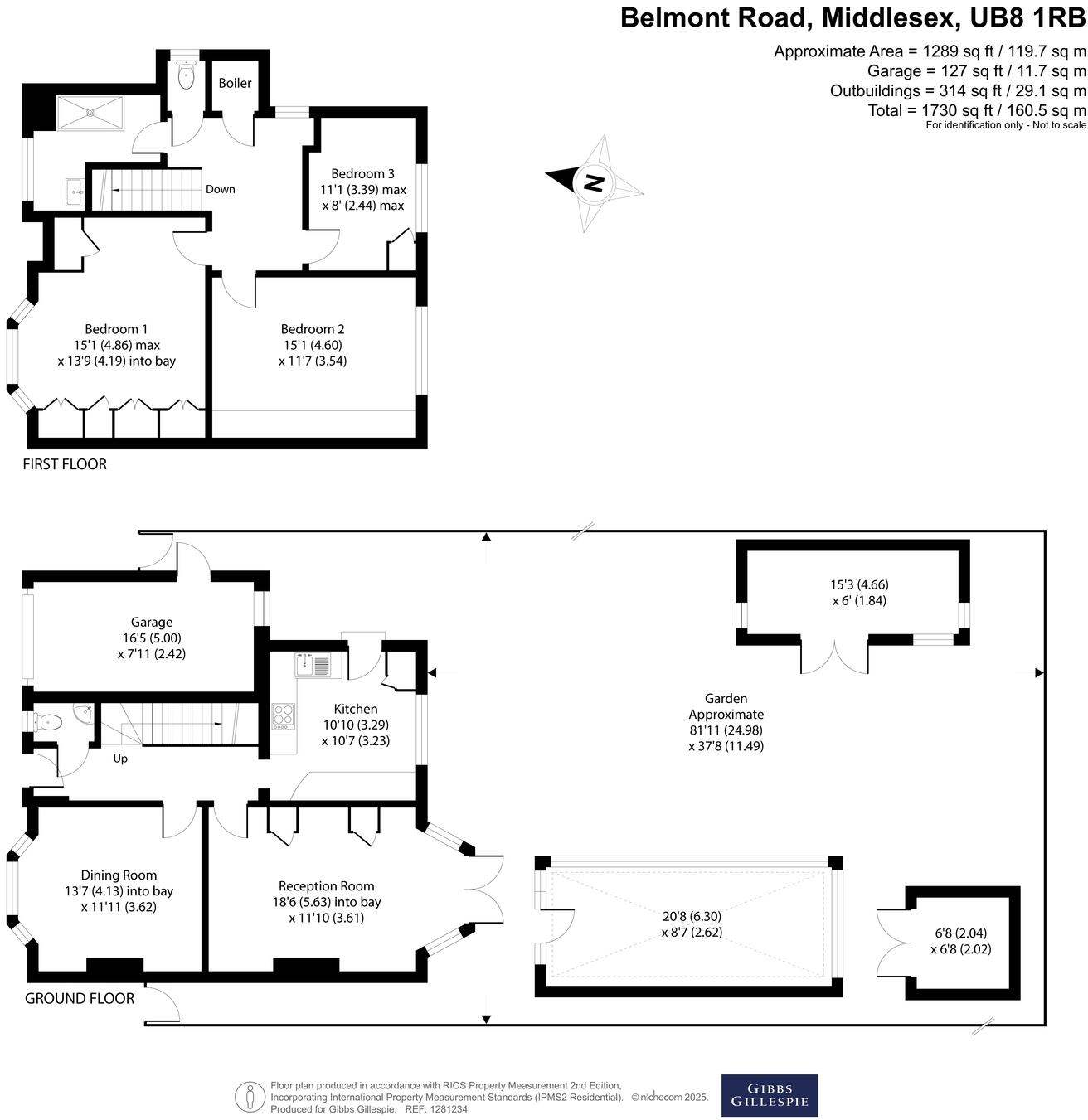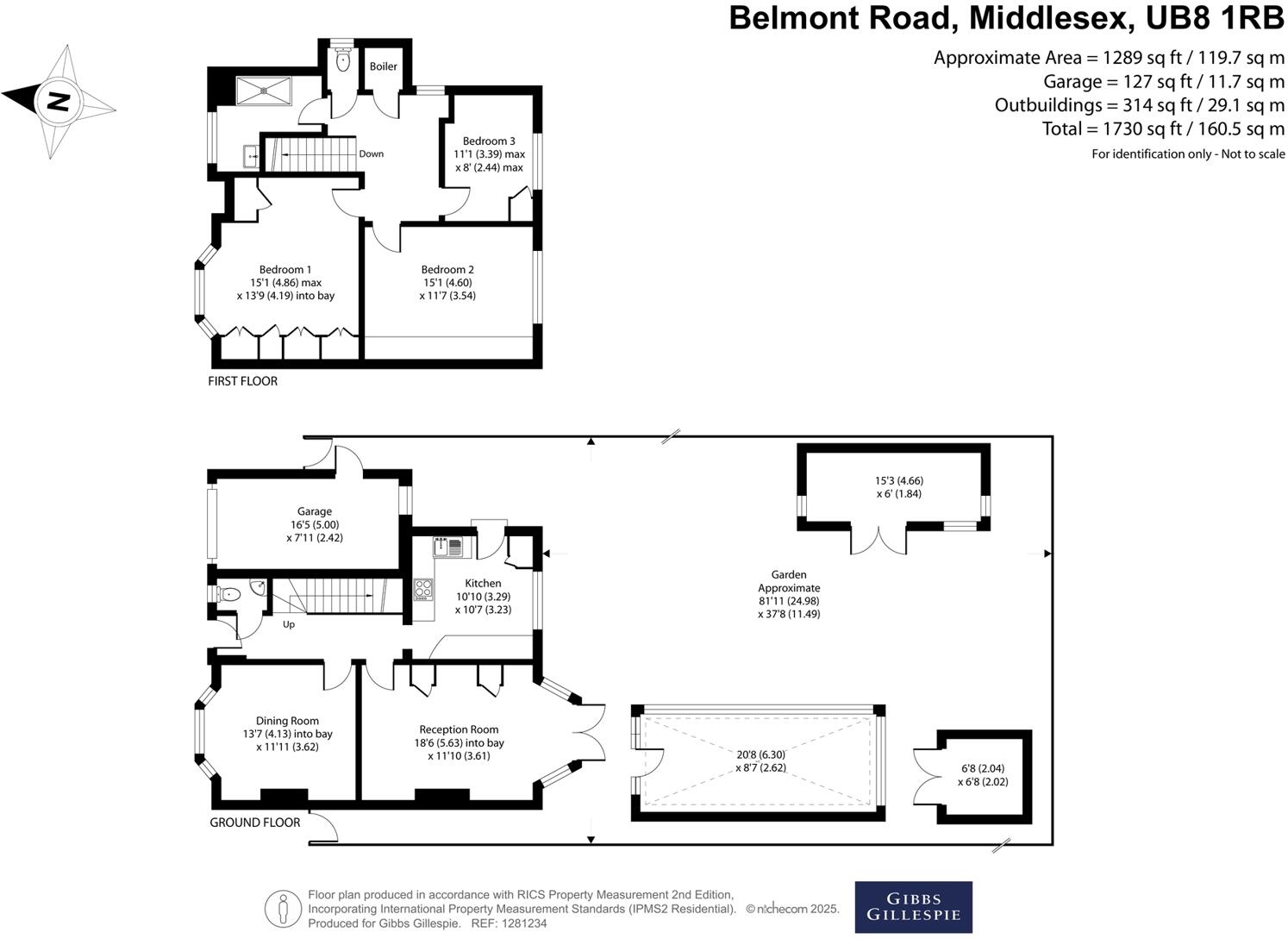 The property is located on Belmont Road, Uxbridge, in the UB8 1RB postcode. It’s a detached house with three bedrooms and one bathroom, offering 1,062 square feet of living space on a 1,730 square foot plot.