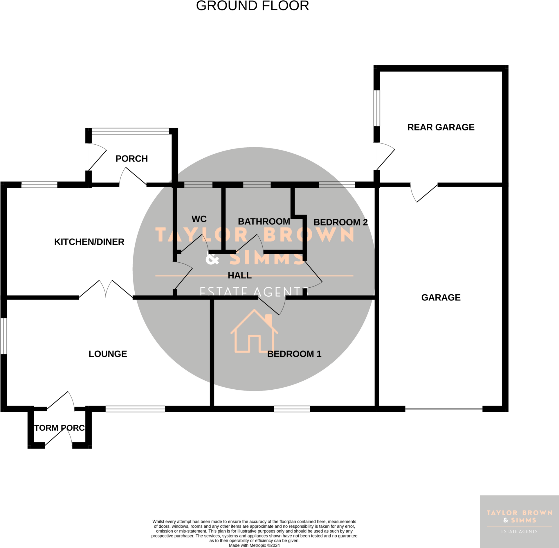 Two bedroom detached bungalow with loft room. Offered for sale with no upward chain. Does require some updating and modernisation. Great location. Ample off street parking, good sized garage and gardens. Entrance storm porch, lounge, kitchen, rear porch, hallway, bedrooms and bathroom.