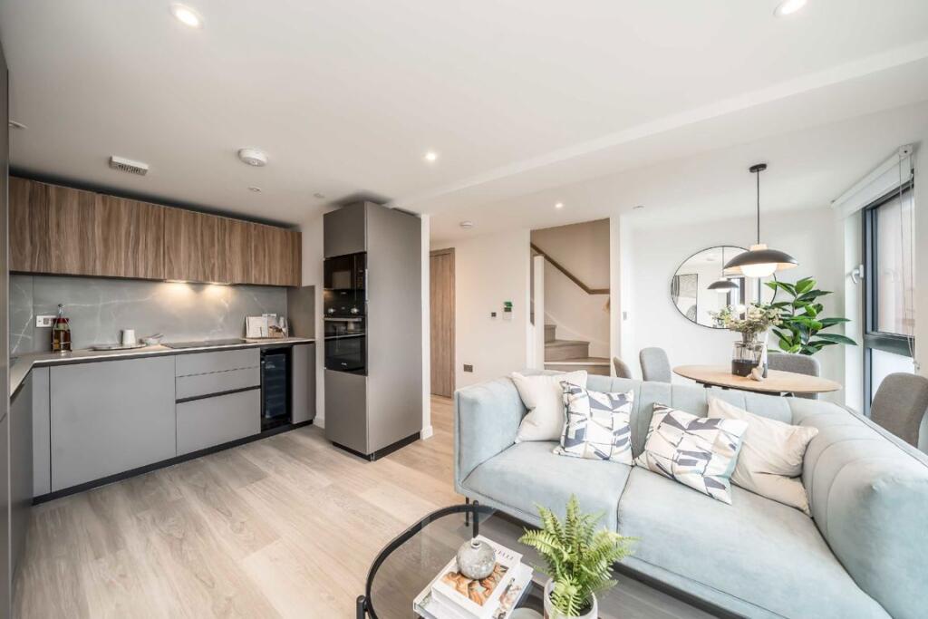 A duplex apartment with a dual aspect. On the 8th floor you have a large kitchen/diner space as well as W.C, up on the 9th floor you will find two double bedrooms and two bathrooms. The property has underfloor heating throughout as well as an air source heat pump. Developed by Thornsett, this ex...