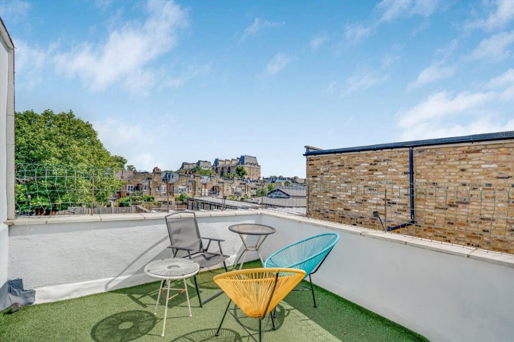 A spacious four-bedroom Victorian family home offering nearly 1,800 sq ft of living space, set on a quiet residential street near Clapham Common. Features include a roof terrace, patio garden, and elegant period charm.