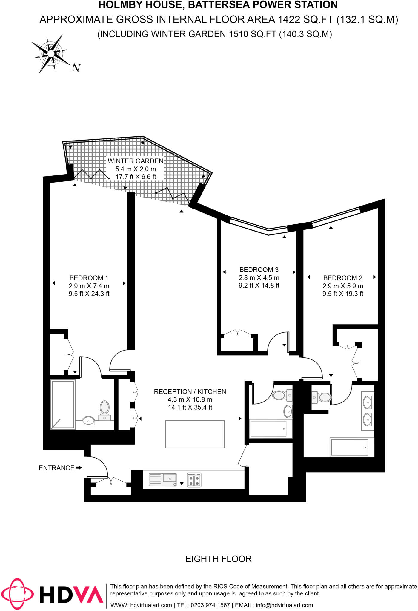 This is a modern apartment located in the Nine Elms area of London. The property benefits from three bedrooms and three bathrooms, and measures 1,422 square feet. The apartment is in good condition and offers modern living space. While the location is desirable, the price appears high compared to the local market.