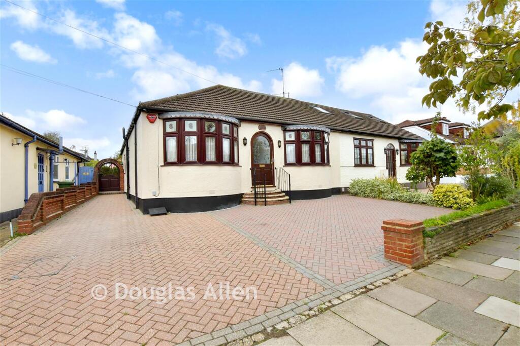 This is a semi-detached bungalow located on Northumberland Avenue in Hornchurch, Essex. The property features two bedrooms and one bathroom, with a total square footage of 950. The house includes a modern kitchen, a conservatory, and a well-maintained garden with a shed. While the kitchen has been updated, the bathroom and some of the bedroom decor appear dated. The property is located in a residential area with access to schools and transportation, including the Gidea Park station. The asking price of £429,500 seems reasonable given the location, size, and condition of the property, although some modernization may be desired.