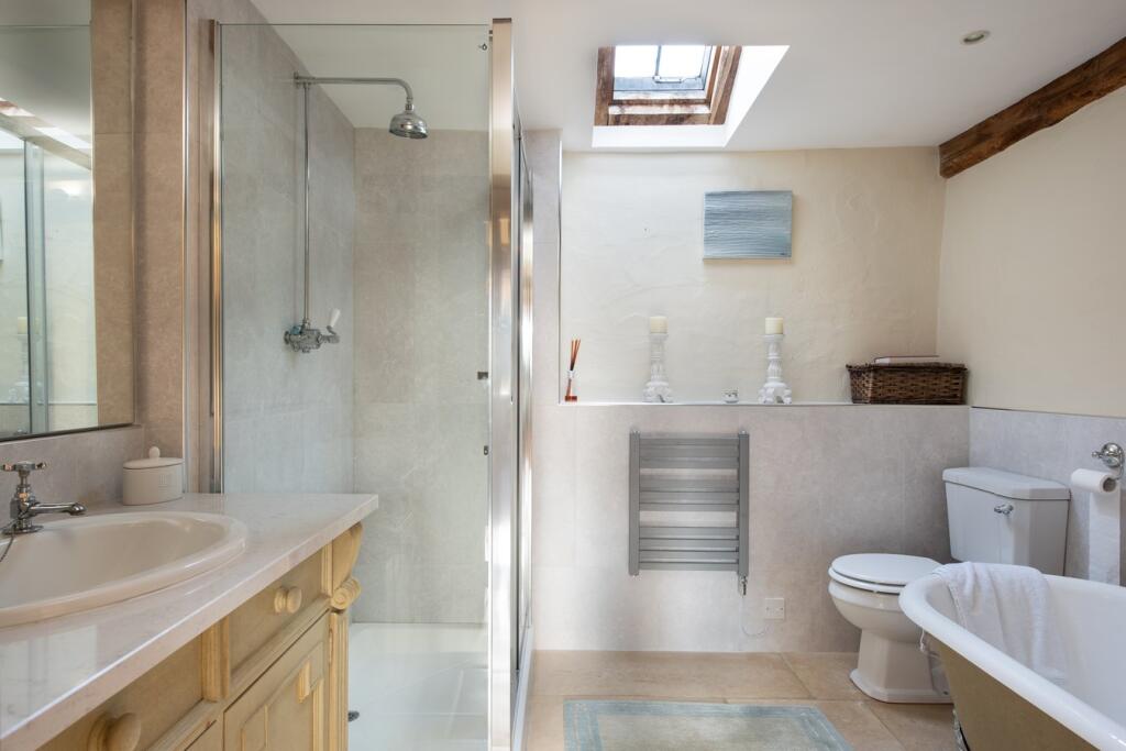 This is a four-bedroom barn conversion located in the rural village of Cold Brayfield, Buckinghamshire. The property includes three bathrooms and is listed for £975,000. The property appears to be well-maintained and offers a blend of traditional charm and modern amenities. It features a well-kept garden and outdoor space. While the location offers a tranquil setting, it may be less ideal for those needing frequent access to city life. The price seems high compared to the average in the area, but barn conversions often command a premium.
