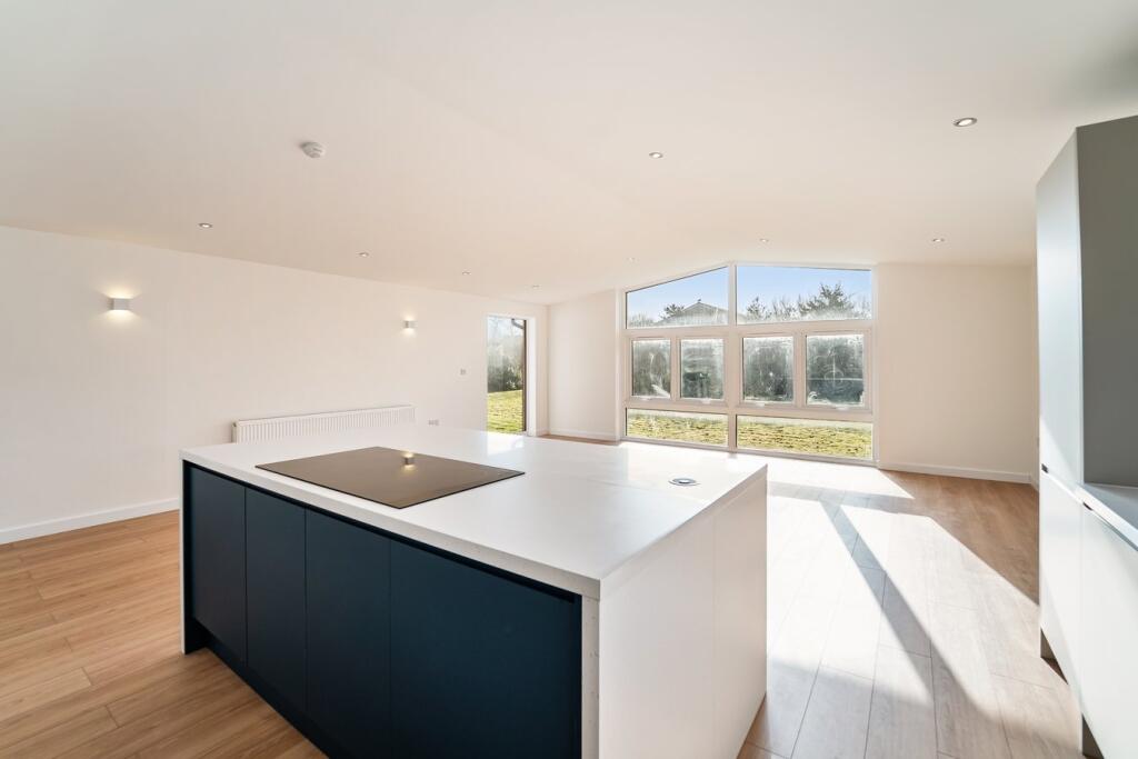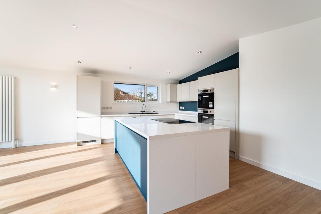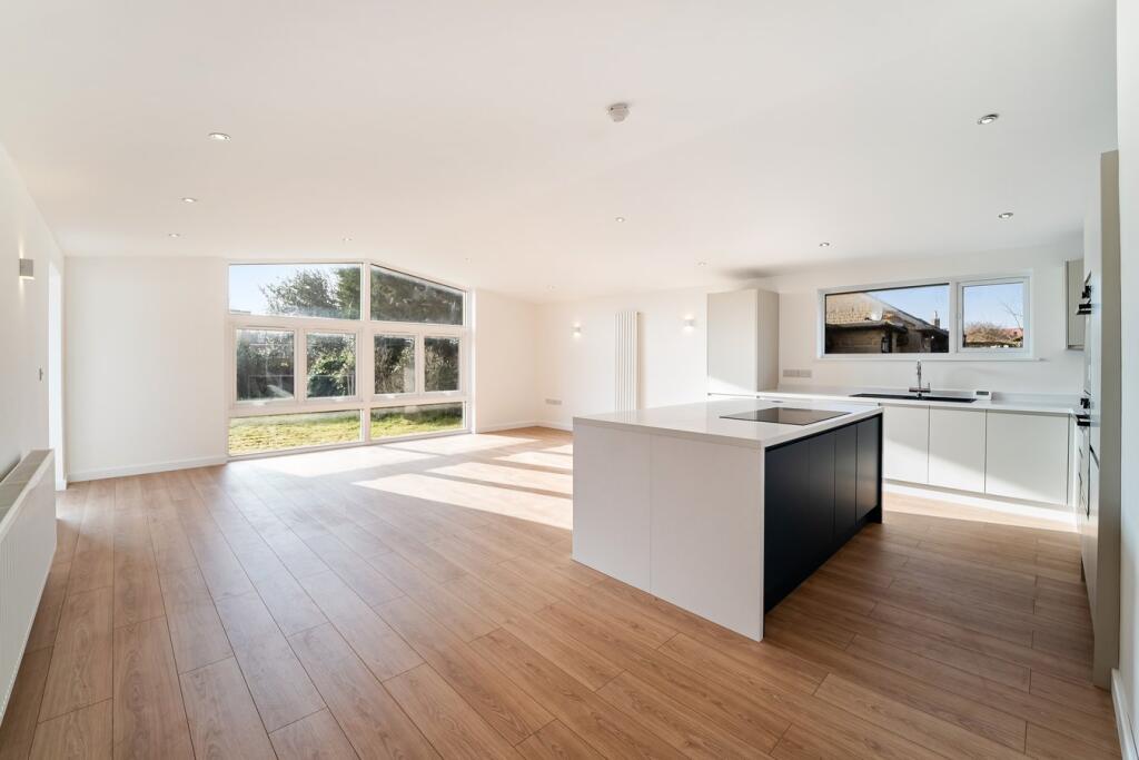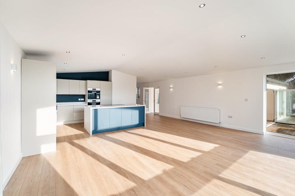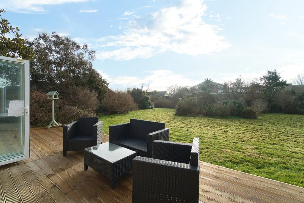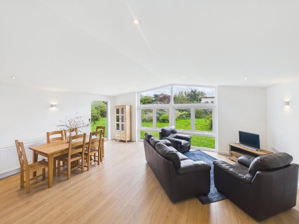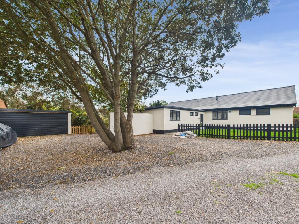 This four-bedroom, two-bathroom property located on Steart Drive in Burnham-on-Sea, Somerset presents a compelling proposition for buyers. The images reveal a newly renovated or newly built home with a modern design and high-quality finishes. The open-plan living space features a contemporary kitchen and seamlessly flows onto a large patio and extensive garden area. The property benefits from having multiple bedrooms, two modern bathrooms and a detached garage.