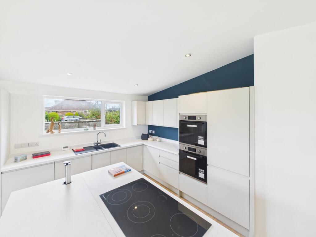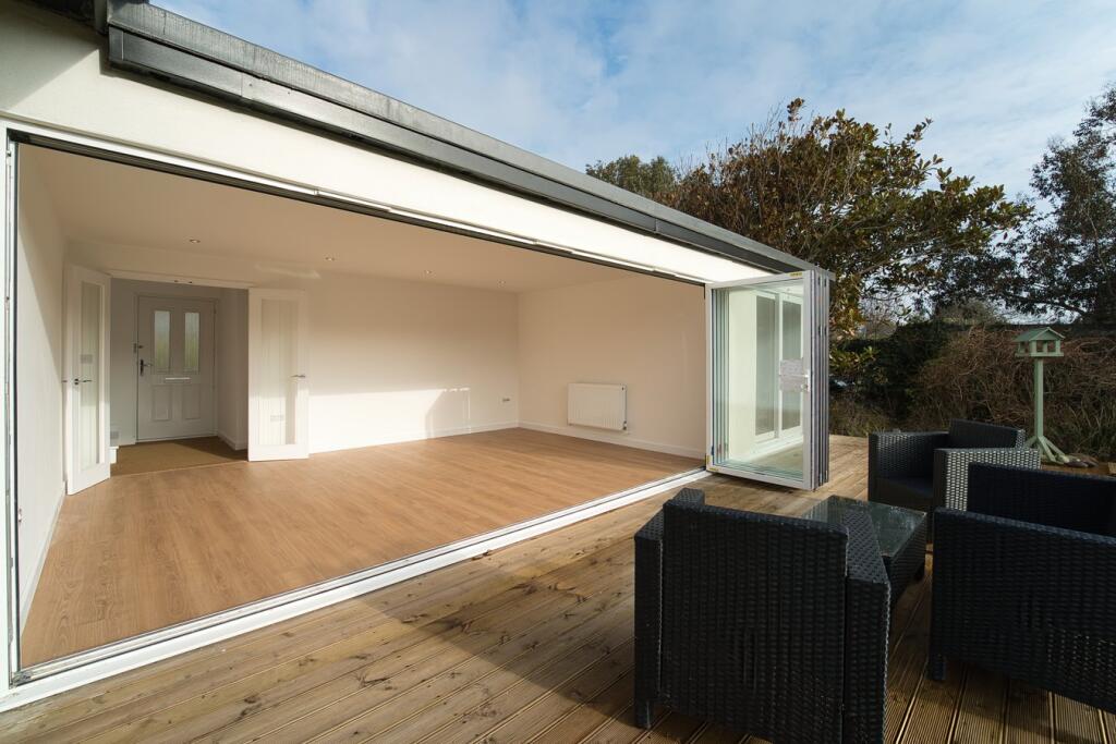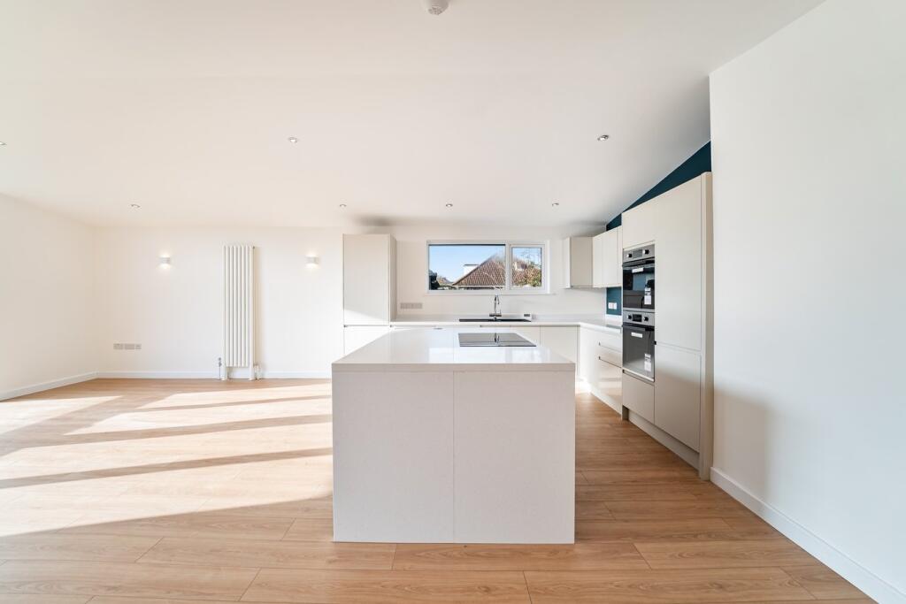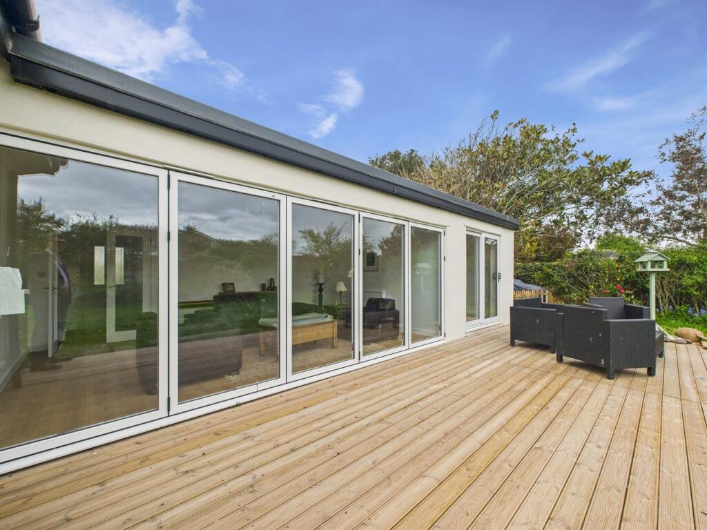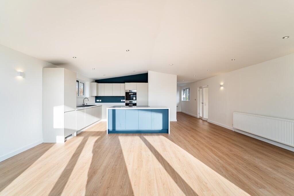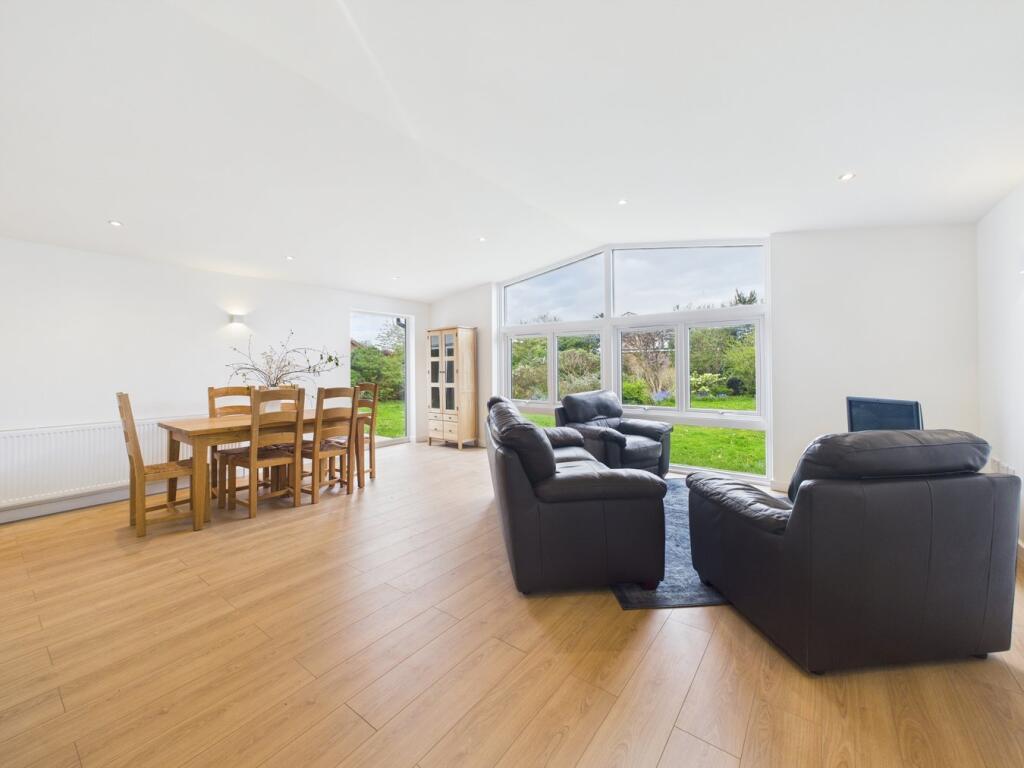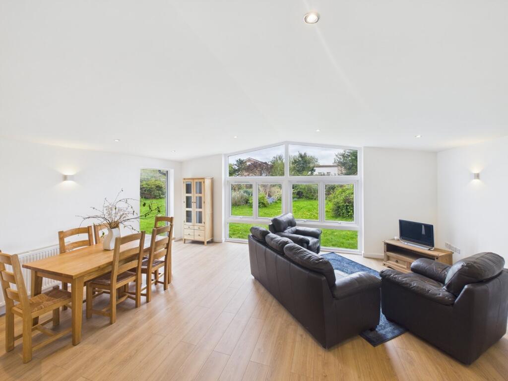 This four-bedroom, two-bathroom property located on Steart Drive in Burnham-on-Sea, Somerset presents a compelling proposition for buyers. The images reveal a newly renovated or newly built home with a modern design and high-quality finishes. The open-plan living space features a contemporary kitchen and seamlessly flows onto a large patio and extensive garden area. The property benefits from having multiple bedrooms, two modern bathrooms and a detached garage.