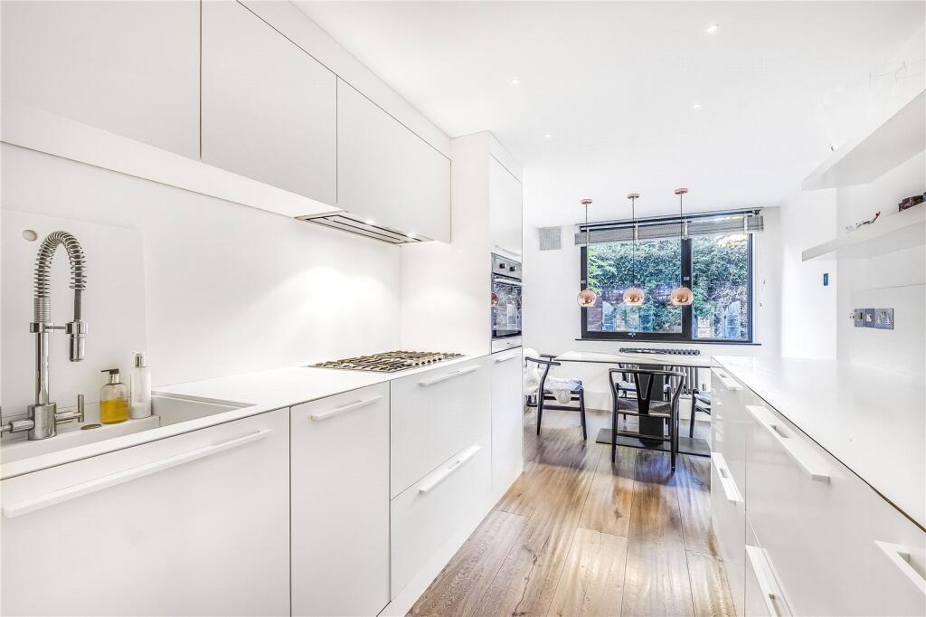 The property comprises two good size bedrooms with a beautiful bathroom and separate WC upstairs and a designer kitchen with Mile appliance and large reception room leading onto a private garden on the ground floor. Inclusive of Heating and Hot Water