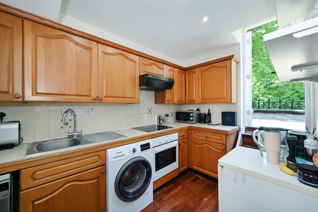 A spacious first floor studio flat with good sized reception room area, separate fully fitted kitchen, bathroom and a vast private decked terrace, with access to communal gardens. Perfect for summer BBQs or a quiet place to read.