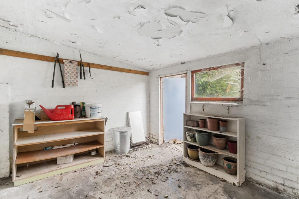 Based on the provided images, the property appears to be in good condition internally. The kitchen and bathroom have been recently modernised, featuring contemporary fixtures and fittings. The internal décor is fresh and neutral. While the property has a modern feel internally, the exterior shows some signs of age. However, there is no visible evidence of significant disrepair or damage. The garden is small, but present and offers some outdoor space. The shed in the garden appears to be in need of some attention.