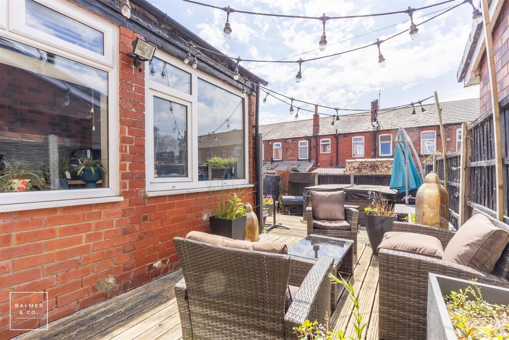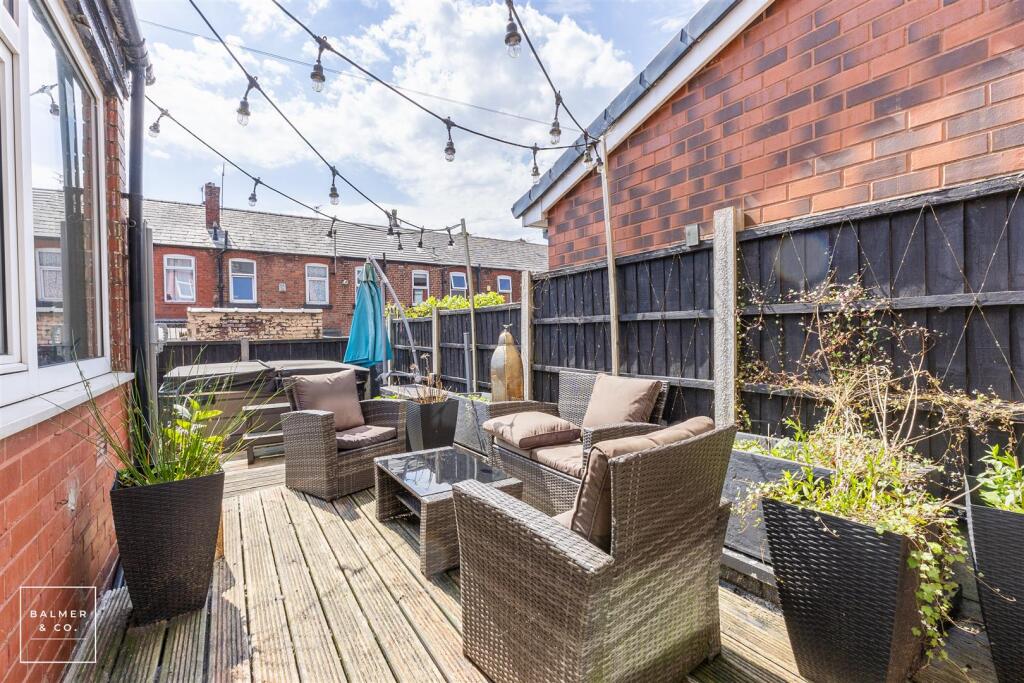 This property is a 2 bedroom, 1 bathroom terraced house located on Hamilton Street in Atherton, Wigan. The property benefits from a modern kitchen and bathroom, and a recently added rear decking area with hot tub. There is also a small, enclosed rear garden. The location is convenient, with nearby schools (Parklee Community School and Atherton High School) and train stations (Atherton and Hag Fold). However, the average house price in the area is significantly higher than the listing price, which may indicate that the property is underpriced, although this could also be due to the smaller plot size.