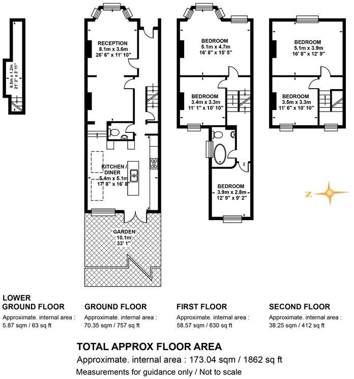 The list price of £1,425,000 for a 1,862.59 sqft property equates to approximately £765 per sqft. Considering the average price per sqft in the area is £631, and the property’s apparent excellent condition and inclusion of a garden, the list price appears to be in line with, or slightly above, market value for similar properties in the area. However, without precise plot size information for comparable properties, a definitive assessment of price value is challenging. The nearby comparable terraced properties support this assessment, with prices ranging from £750,000 to £1,475,000. The lack of sqft data for these comparables makes a precise price per sqft comparison difficult.