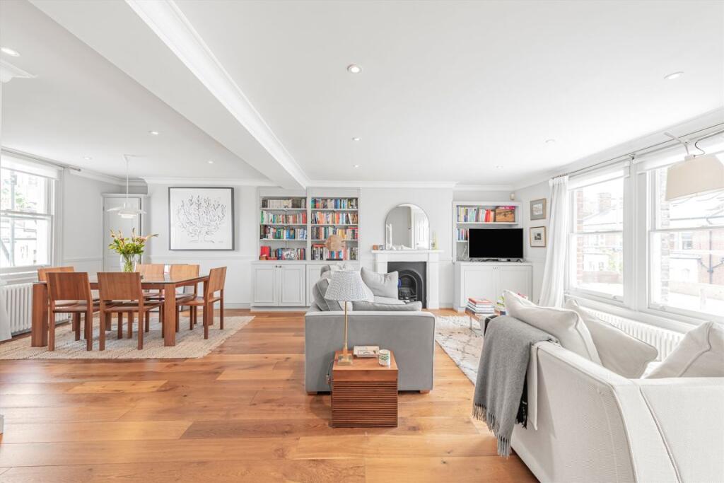 A superb split level apartment set over the top two floors of this impressive Victorian house on a quiet road in Brook Green. On the second floor is a wonderfully spacious and bright living room with dining area and a semi-open plan modern kitchen. On the third floor are two double bedrooms and a...