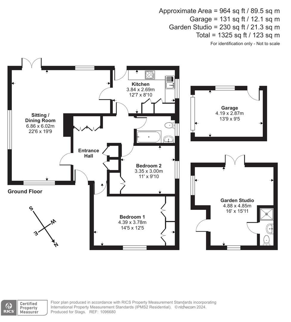 Detached bungalow requiring refurbishment with Planning Approval PLUS separate Studio in 1/4 acre plot with views. Freehold. EPC Band: E.