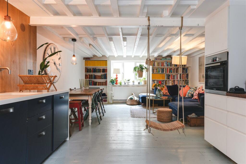 The Home - This charming split-level apartment has two double bedrooms with double height ceilings, the open plan reception room/kitchen is a vast space that has a wonderfully homely feel, with exposed white beams and comes with a large walk-in larder. There are painted wooden floors th...