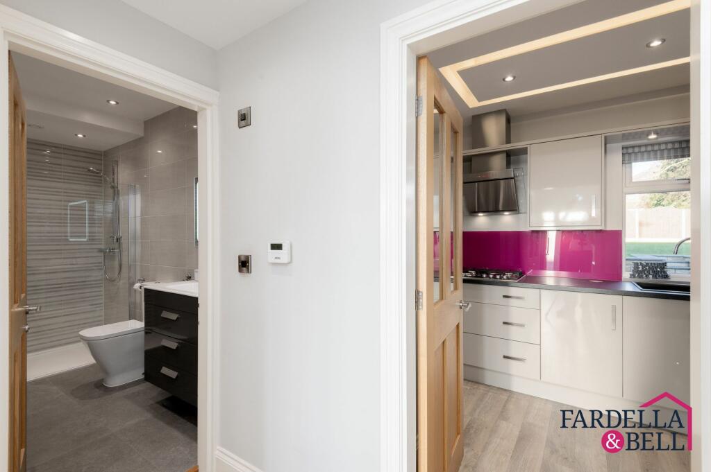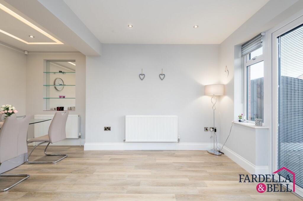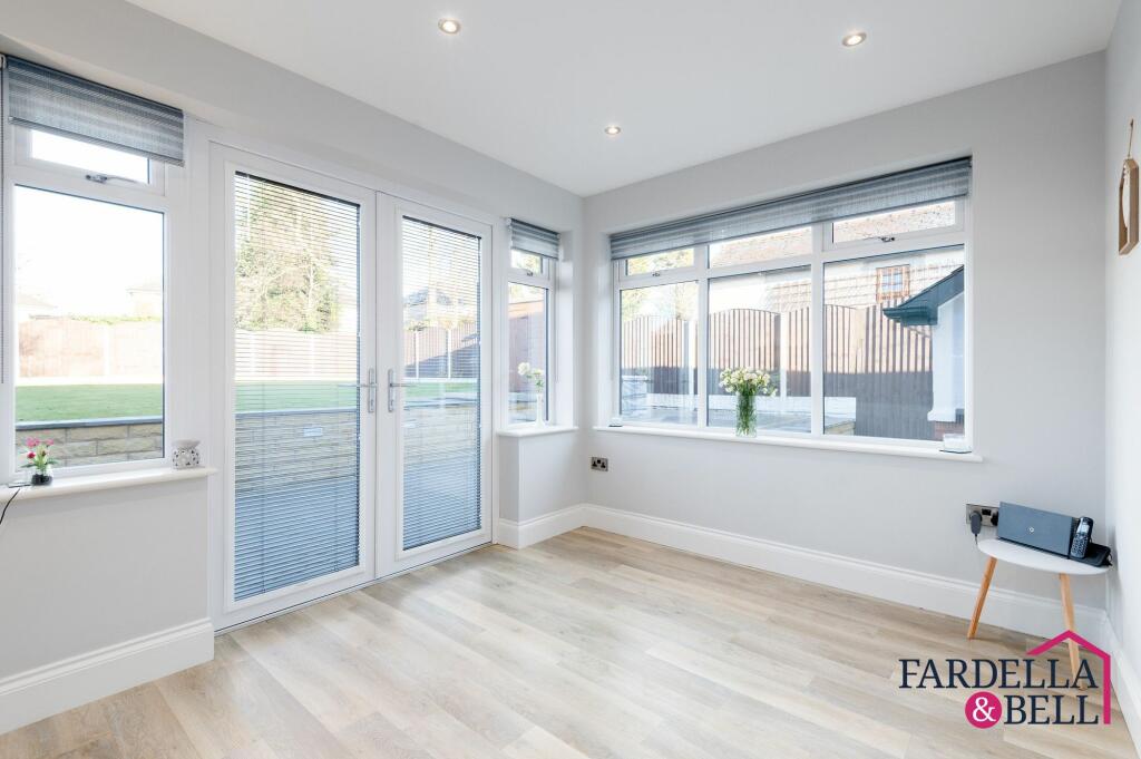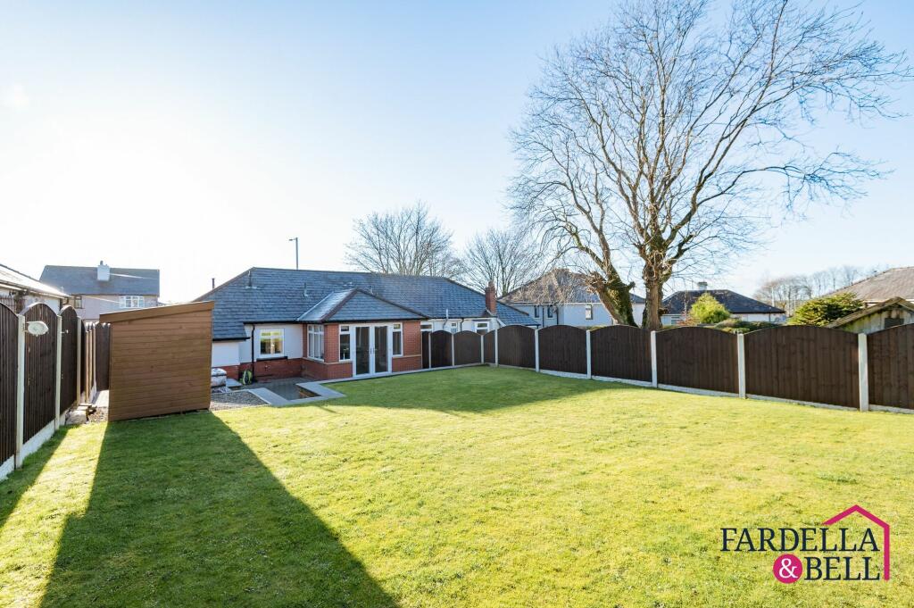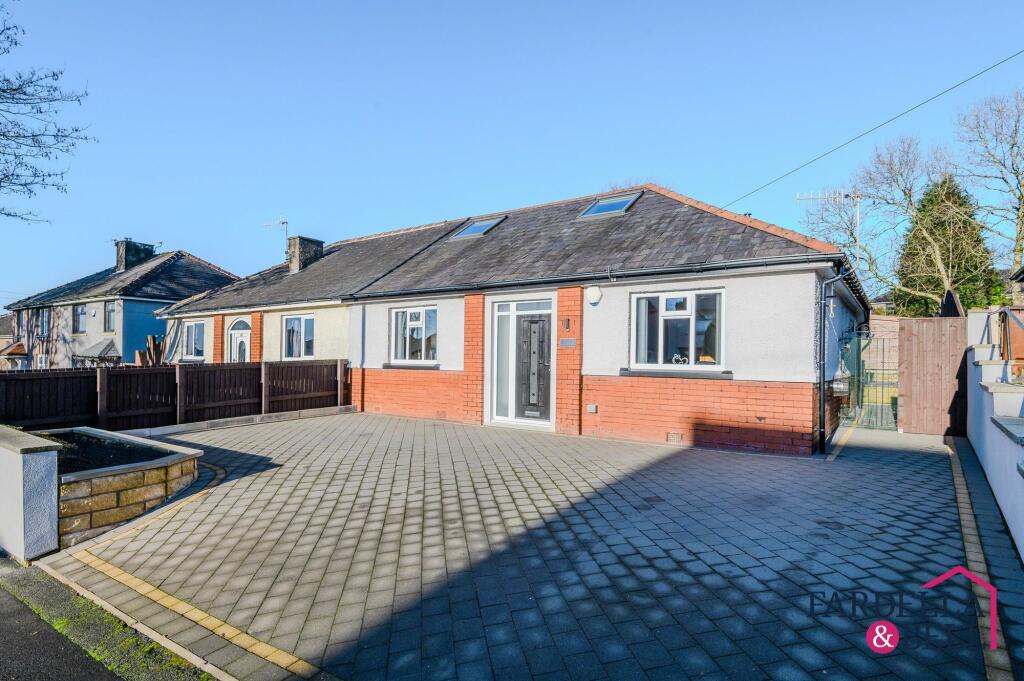 Charming 2-bed semi-detached bungalow with modern kitchen, shower room, garden room extension, and spacious garden. Driveway for 3 cars, outdoor seating, shed with electric supply, and tranquil outdoor space for relaxation and entertainment. Ideal for contemporary living and outdoor bliss.
