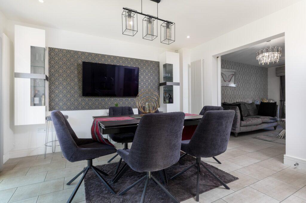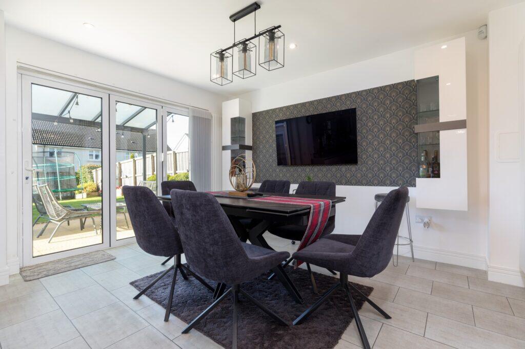 This is a well-presented, modern detached villa in the desirable suburb of Newton Mearns. The property offers four bedrooms, three bathrooms, and a spacious living area. The kitchen and bathrooms have been recently updated, and the property benefits from a well-maintained garden and a detached garage. The location is good, with access to local amenities and transportation links. The price is slightly above average for the area, but the property offers good value for money given its size, condition, and features.