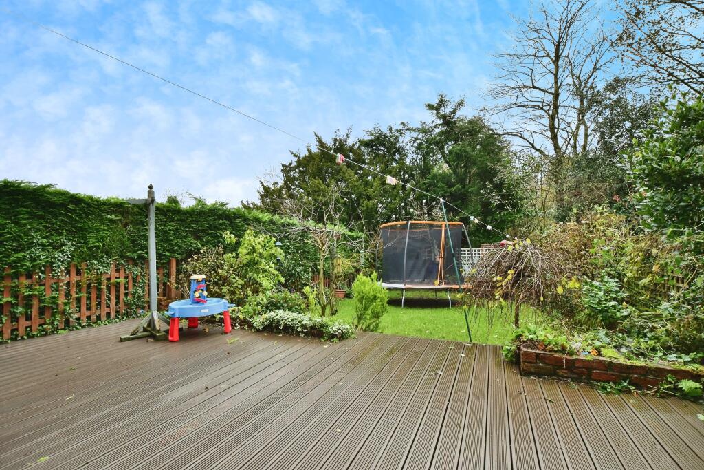 This is a semi-detached property on Hollins Road, Macclesfield. It features four bedrooms and two bathrooms, with a total square footage of 1,505.87. The property includes a garden with a shed and both lawn and decked areas. The interior has some modern elements, such as the kitchen and bathrooms, but also retains some traditional features like exposed brickwork. While generally in good condition, some minor renovations could enhance the property. The location is favorable, with proximity to schools and transportation links. The asking price of £475,000 appears somewhat high compared to the local average, but is justified by the larger square footage.