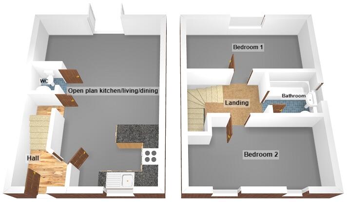 Well presented two bedroom semi detached house comprising entrance hall, open plan kitchen/living/dining, downstairs w.c. family bathroom, enclosed rear garden and OFF ROAD PARKING to the front. Viewing recommended.