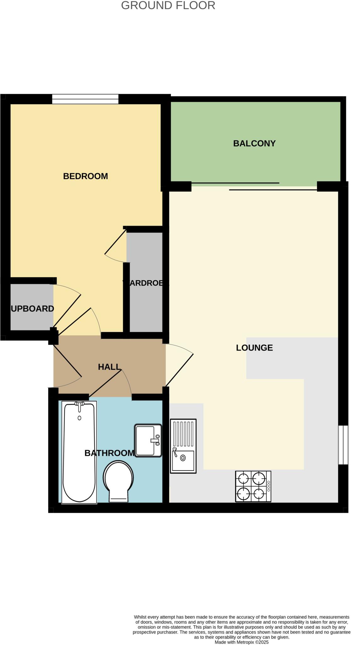 Modern first floor apartment in a popular residential location. The attractive apartment comprises : communal hallway, entrance hall, through lounge / kitchen, double bedroom with wardrobes, fitted bathroom and a balcony. UPVC double glazed windows and electric heating system. Communal gardens an...