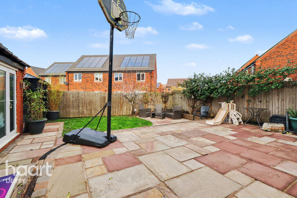 A stylish four-bedroom detached home on a sought-after Derby road, featuring a spacious open-plan living area, private garden with multiple patios, ensuite to master and a detached garage offering excellent conversion potential