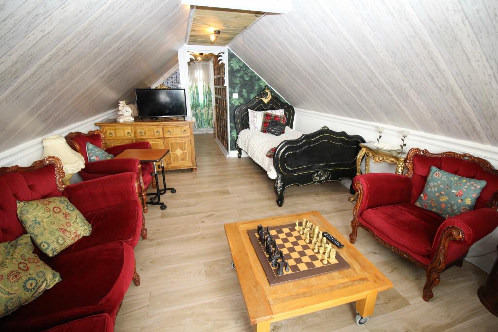 The property’s small garden space is creatively landscaped, mirroring the interior’s design philosophy. The overall presentation is well-maintained and suggests a recent renovation; however, without a full survey, assessing the property’s structural integrity remains uncertain.