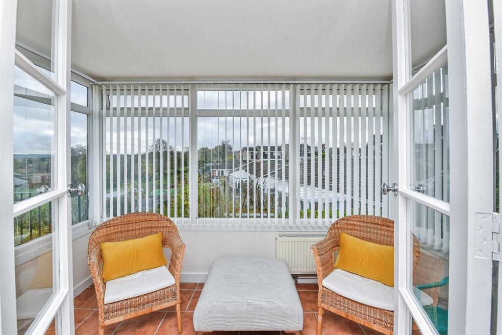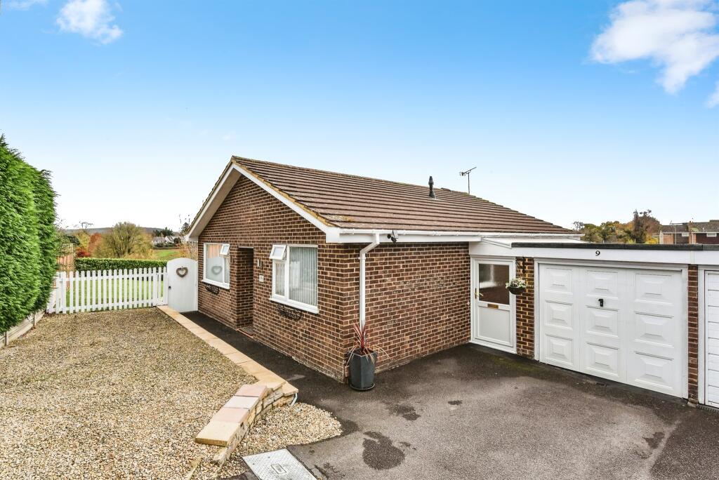 Beautiful detached bungalow on Damask Way, Warminster, offering spacious living, stunning countryside views, a bright sunroom, stylish kitchen, three bedrooms including master with en-suite, modern bathroom, wraparound garden, garage, and driveway.