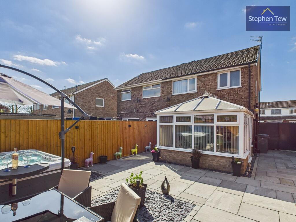 Immaculate 3-bed semi-detached house in sought-after area. Stylish interior with modern amenities. Spacious lounge, open-plan kitchen/dining, conservatory. Fitted wardrobes. Landscaped garden with decking, hot tub. Driveway, re-pointed exterior, FENSA windows, privacy blinds. Boarded loft for sto...