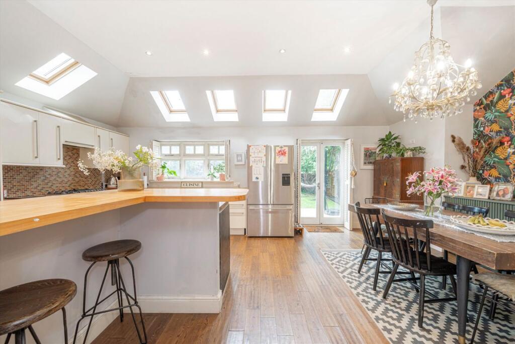 This is a detached property in Weybridge, Surrey, marketed by Jackson-Stops. The property features 4 bedrooms and 3 bathrooms. While the square footage is not provided, the property includes a garden. The house appears to be in good condition, with modern interiors, although some areas could benefit from cosmetic updates. The location is desirable, being in Weybridge Riverside, with proximity to schools and transportation. The asking price of £1,300,000 is above the local average, but this could be due to the property’s features and location. Further analysis would require the property’s square footage to assess the price per square foot relative to the local market.