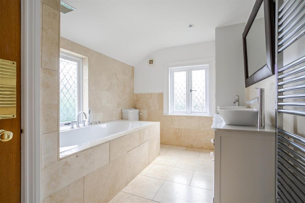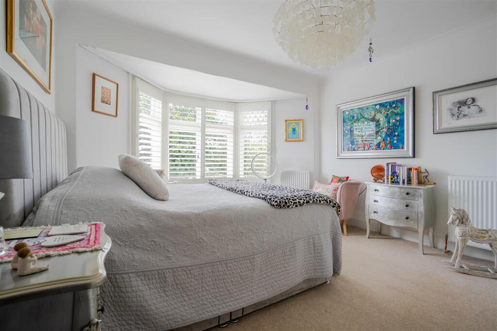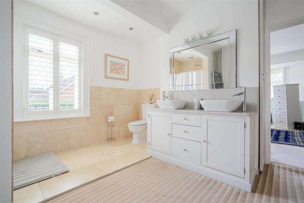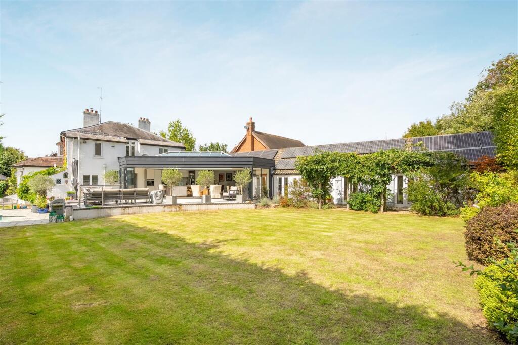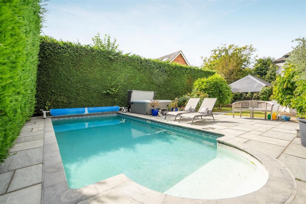 An extended four bedroom, three bathroom, double-fronted detached character home on a private road with an in and out driveway, south east facing garden and a swimming pool.