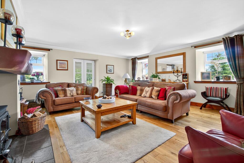 Donald Ross are thrilled to present this stunning barn conversion at 2 Lylestone Farm, Kilwinning, nestled on a generous plot with meticulously landscaped rear gardens, mature shrubs, and sweeping countryside views.