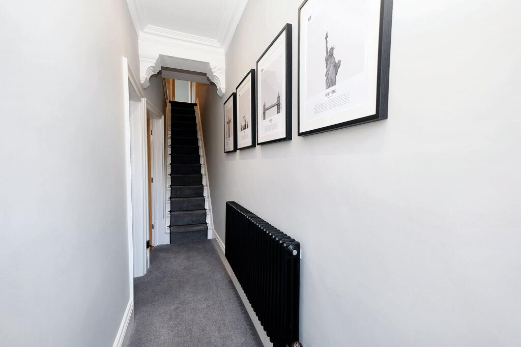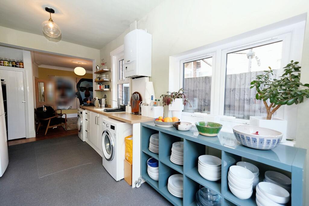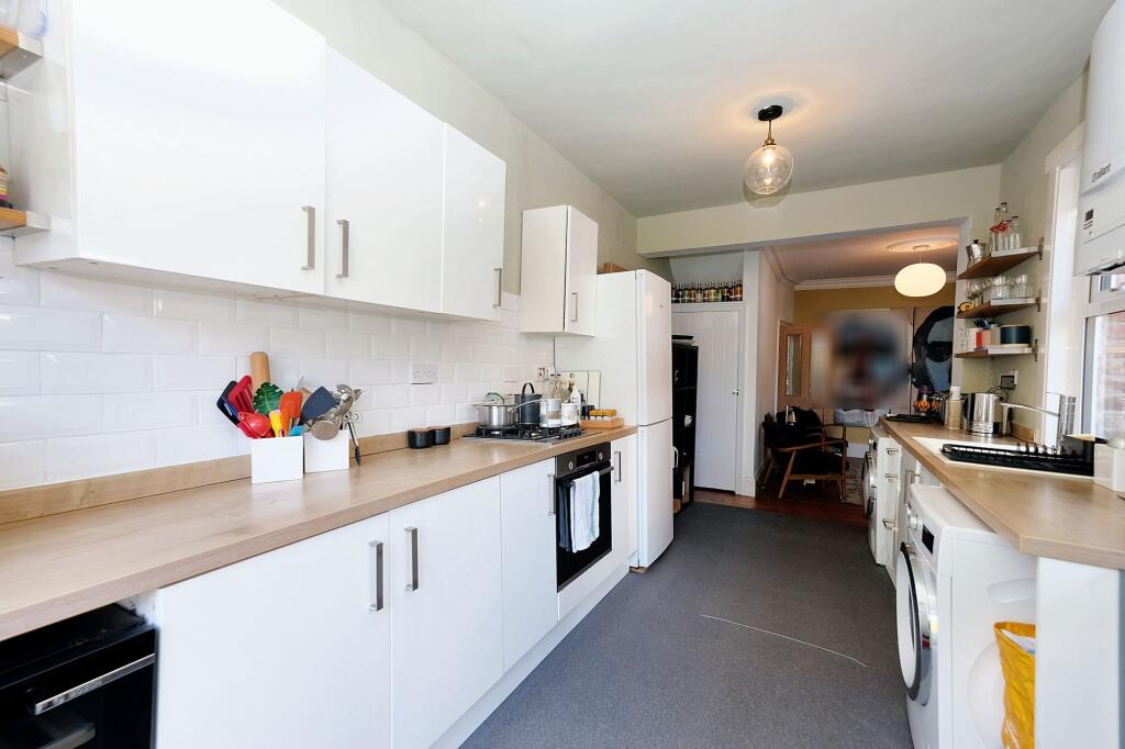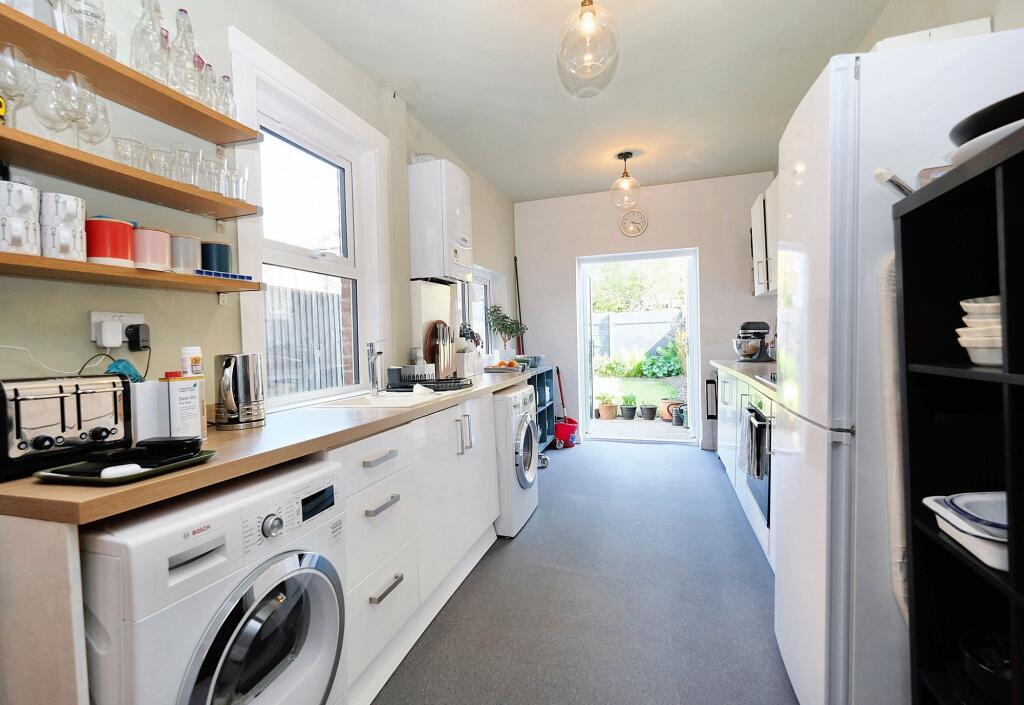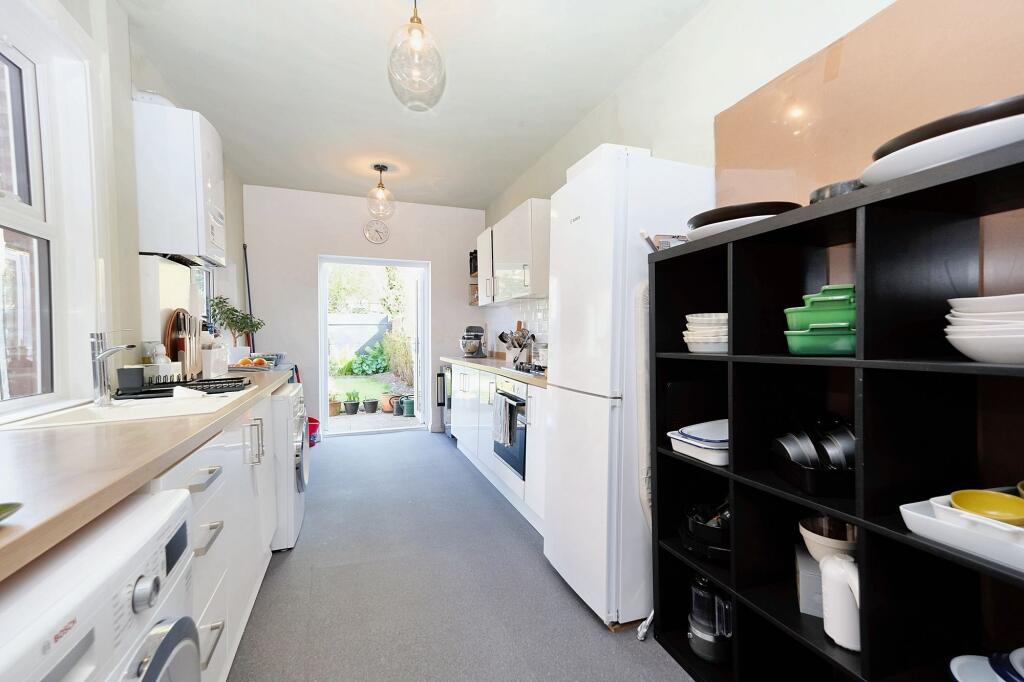 The property appears to be in good condition based on the provided images. The interior is modern and well-maintained, with recent renovations evident in the kitchen and bathrooms. There is evidence of tasteful décor and modern fixtures and fittings. The garden is relatively small but well-kept.