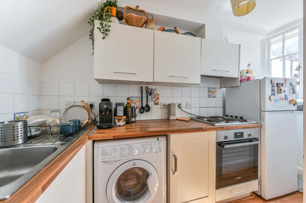 This gorgeous 3rd floor split level flat offers 1 spacious double bedroom with built in storage, open plan reception with space to dine and modern integrated kitchen.