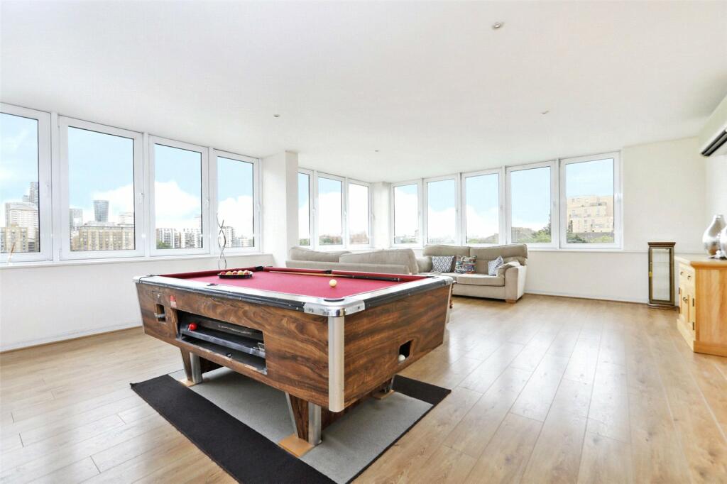This three-bedroom, three-bathroom penthouse apartment in Rodney Point, Rotherhithe, offers a desirable combination of location and spacious living. The apartment’s river views are a major selling point, enhancing its appeal and potentially increasing rental value. The open-plan living area, featuring large windows and a pool table, provides a light and airy atmosphere suitable for modern living. The condition is decent overall, though the kitchen fittings appear somewhat basic and could benefit from some updating. The lack of outdoor space, common with penthouse apartments, is a potential drawback for some buyers who may appreciate access to a garden or balcony. The surrounding area offers convenient access to transportation links and schools and the proximity to the Thames provides great recreational opportunities. While the listed price falls within the range of similar properties in the area, a comparison with sales data of comparable units would be necessary to fully evaluate its market value. In summary, this is a well-located and spacious apartment offering stunning views, suitable for modern lifestyles but with a key limitation of lacking outdoor space. The listed price appears reasonable for the area, but potential buyers should carefully compare prices with similar properties in the area and consider the cost of updating parts of the property.