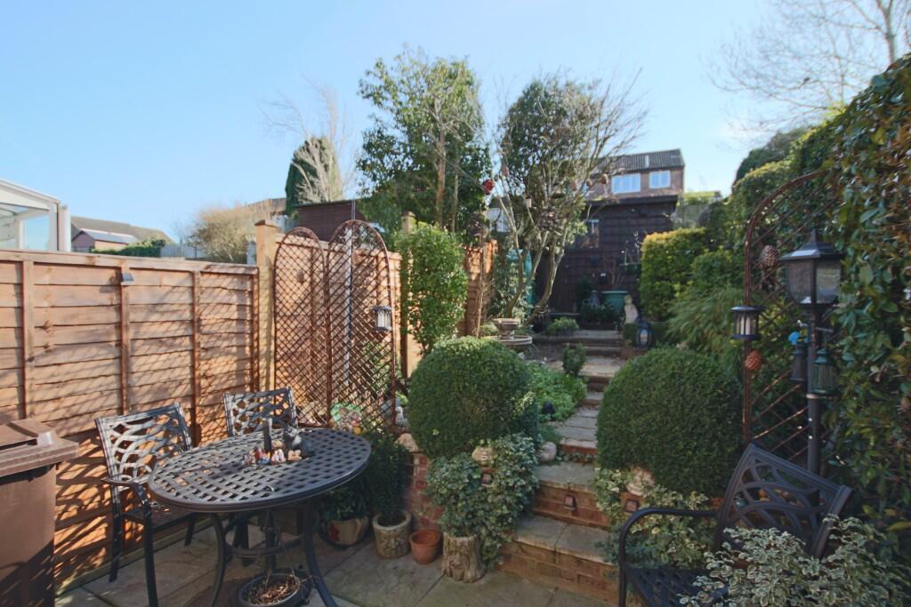 The property is a 2 bedroom, 1 bathroom terraced house located in Maidstone, Kent. It appears to be in good condition, with a recently updated kitchen and bathroom. There is a small, well-maintained rear garden. The location is convenient, with several train stations within a reasonable distance and proximity to schools. The list price is slightly above average for the area, but may be reasonable considering its condition and the inclusion of a garden. More information on comparable properties would be needed to make a definitive judgement on value.