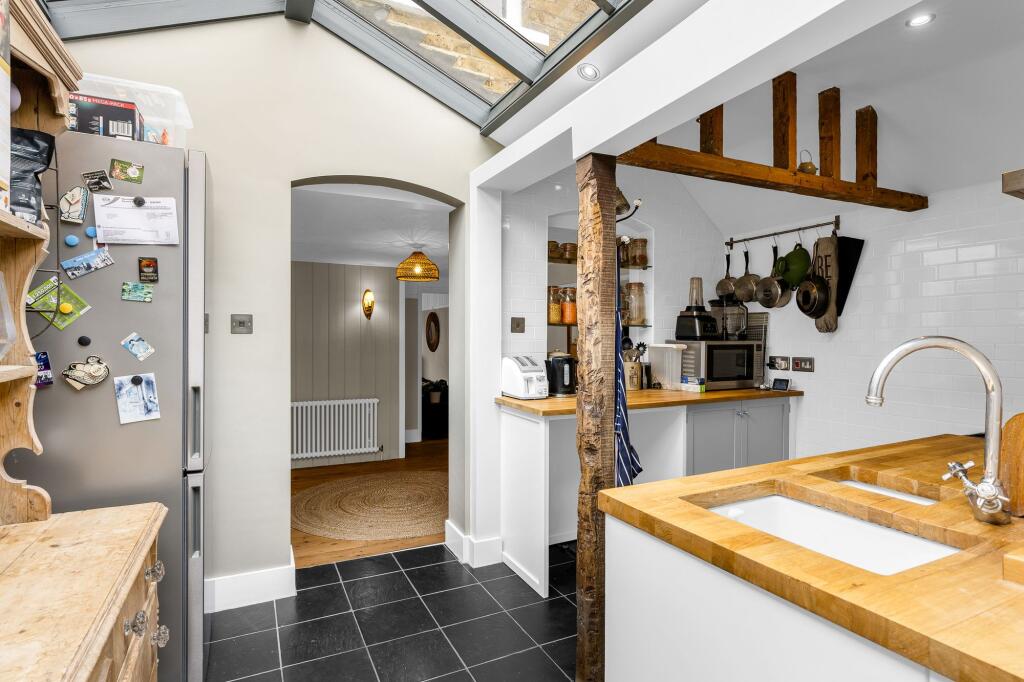 This three-bedroom terraced house in Stanstead Abbotts, Hertfordshire is listed at £525,000. The property benefits from a modern extension to the rear, which creates a bright and spacious kitchen/diner. The original part of the house retains character features, including exposed beams and fireplaces. The garden is a good size and includes a shed/workshop. The location is convenient for local amenities and transport links. However, comparable properties in the area have recently sold for less. Therefore, the asking price may be slightly high.