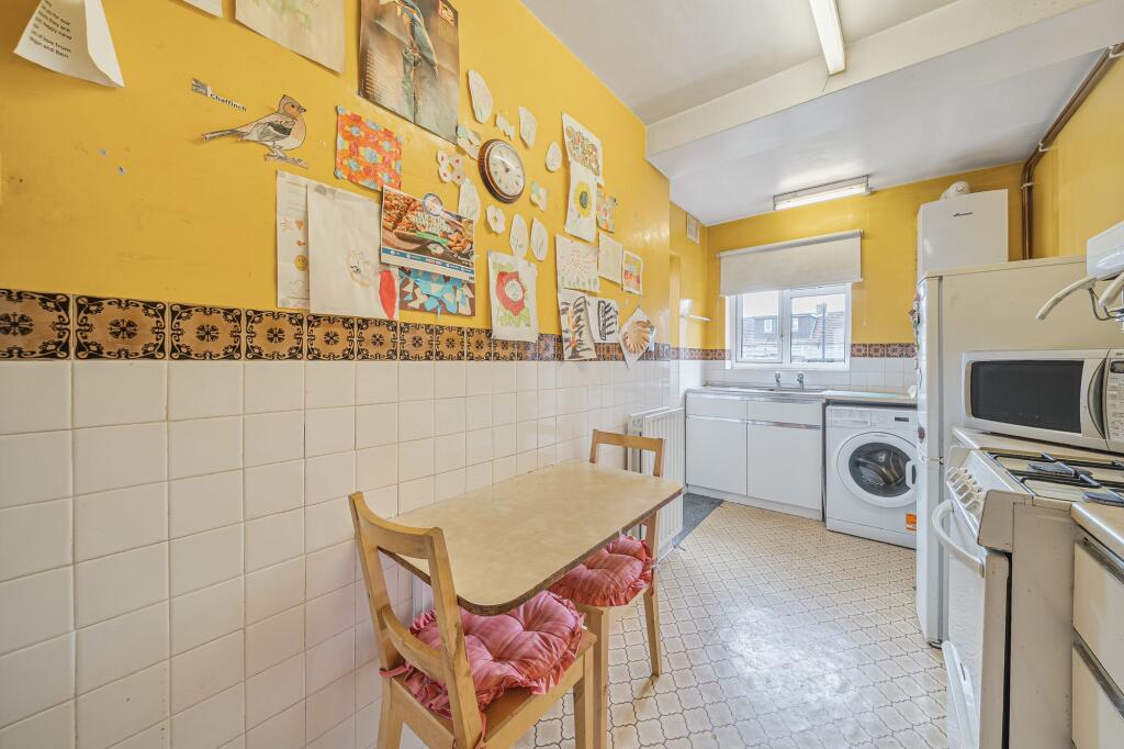 No forward chain! Three-bed terraced home with driveway, living and dining rooms, kitchen, conservatory, east-facing garden. Huge potential to modernise in a great location near transport & schools.
