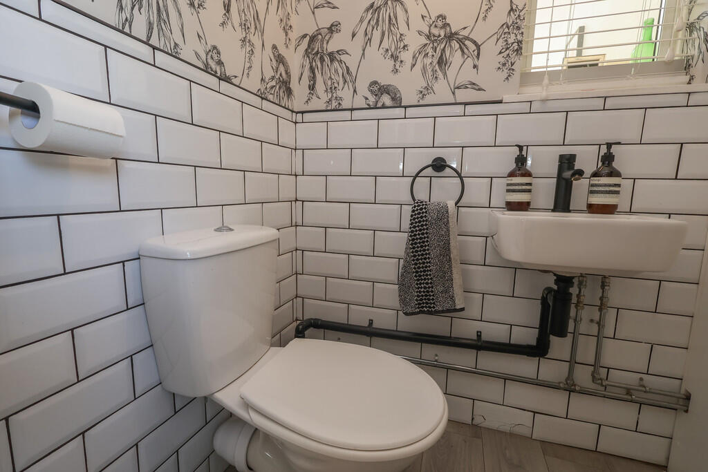 This is a three-bedroom semi-detached house in Tolworth, Greater London. The property benefits from its location, being close to schools and transportation. The house appears to be in good condition, with a modern kitchen and bathroom. It also features a garden with a patio area and a shed. The asking price of £599,950 seems reasonable given the property’s location, condition, and features.