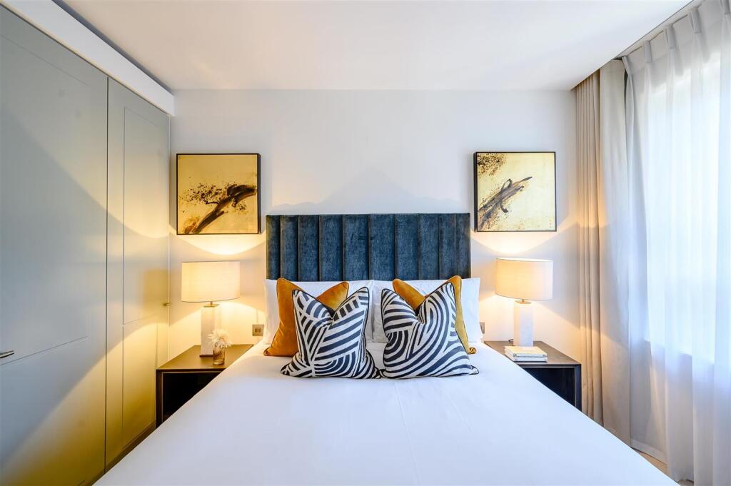 A luxurious interior designed one-bedroom 4th-floor apartment set over 451 sqft, comprising a large open-plan reception room leading onto a private balcony. The fully integrated kitchen with appliances from Siemens and Miele including oven and induction hobs, large fridge freezer, and dishwasher ...