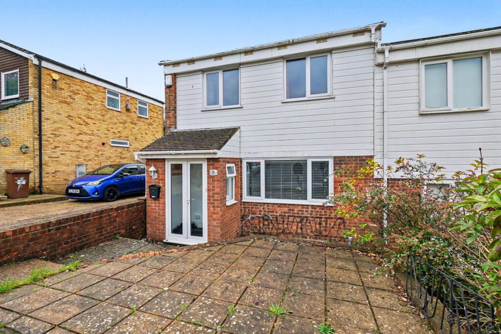 This is a three-bedroom semi-detached house in Walderslade, Chatham. The property benefits from a modern kitchen and bathroom, but some rooms would benefit from redecoration. It features a patio garden. The property is located close to local schools and amenities, making it suitable for families. The asking price of £300,000 appears reasonable given the location, condition, and recent sales in the area.