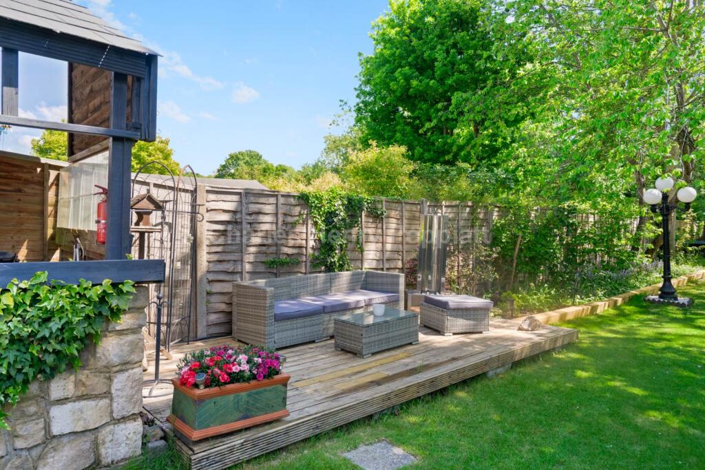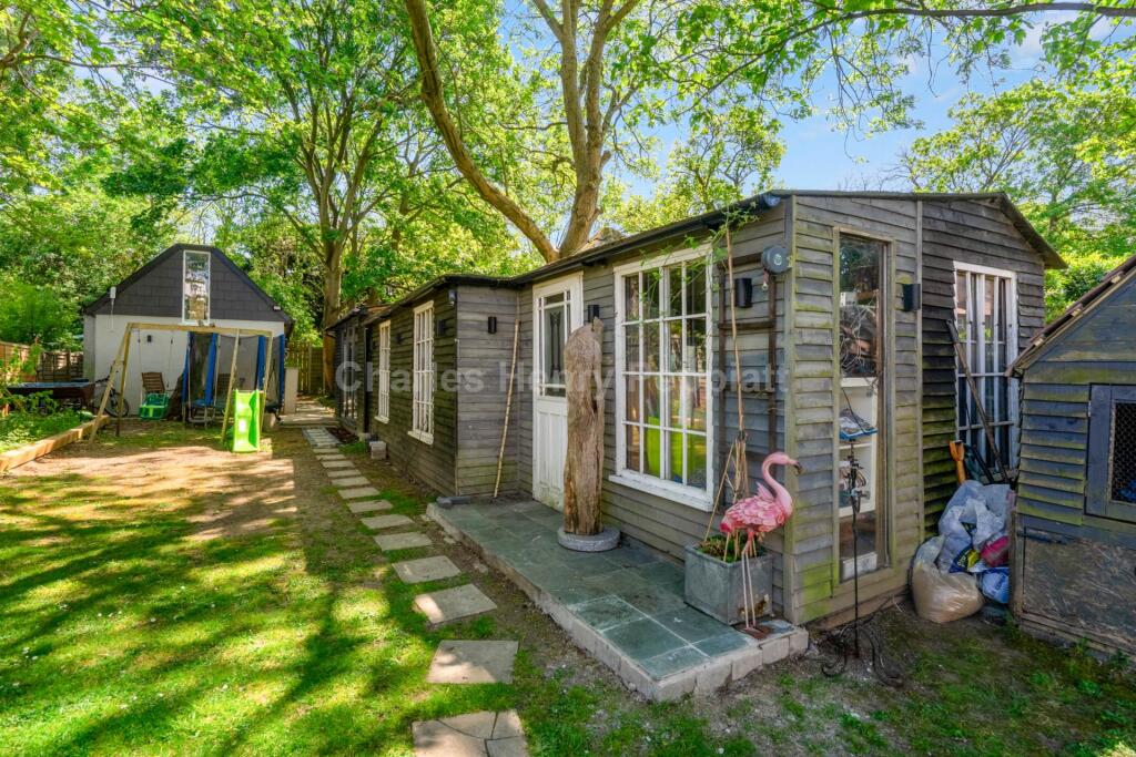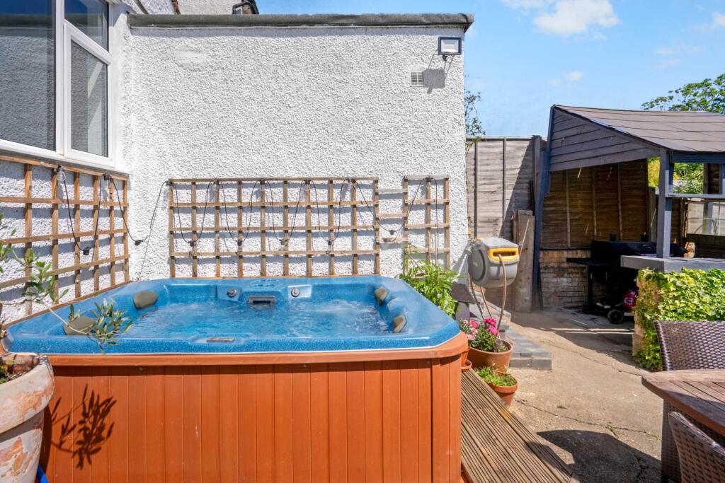 The property boasts a significant plot size of 1,687.78 sqft, substantially larger than the average for the area. This adds considerable value and desirability to the property. The presence of a hot tub and several outbuildings, including a large studio/workshop, further enhances the appeal and functionality of the outdoor space.