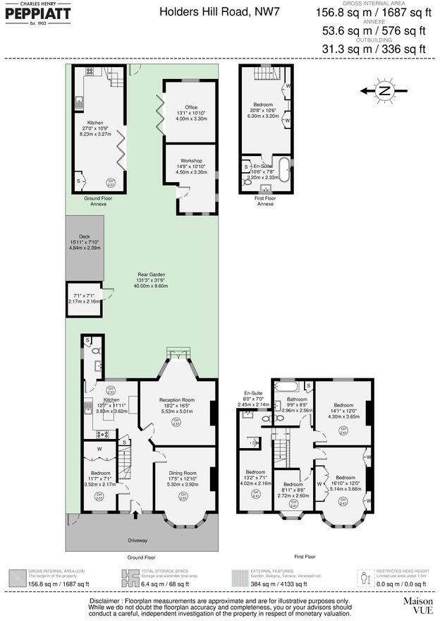 The property is located on Holders Hill Road, Mill Hill, NW7, a suburb of Barnet in London. The area benefits from being close to several highly-rated schools, including St Mary’s Cofe Primary School (Outstanding Ofsted rating) and Hasmonean High School for Boys (Outstanding Ofsted rating), both within a kilometre of the property. Several Thameslink stations are also within a reasonable commuting distance, providing good transport links into central London. The proximity to good schools and transport links makes this a desirable location for families.
