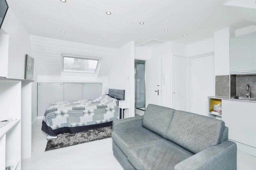 This property is a studio apartment located in Thorpe Hamlet, Norwich. The apartment is modern and appears to be in excellent condition based on the provided photographs. The kitchen and bathroom are contemporary and well-maintained. The open-plan living space is efficiently designed, maximizing the available area. However, the property lacks a garden and is relatively small at 175 square feet.