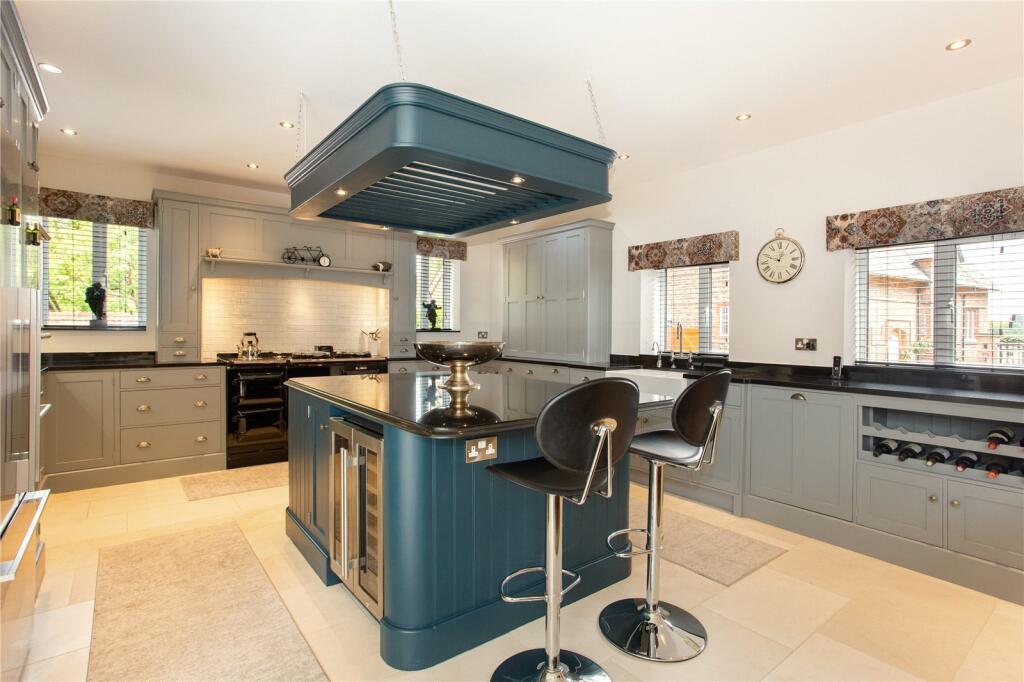 This property, marketed by Savills, is a substantial country house situated in the highly sought-after village of Great Budworth, Cheshire. The listing showcases a large residence with multiple bedrooms and bathrooms, reflecting a high level of opulence and luxury. The images highlight several key features, such as a well-equipped kitchen with high-end appliances, multiple generously sized living areas that are well decorated, and several beautifully appointed bedrooms. Further enhancing the property’s appeal is the extensive outdoor space, which includes a swimming pool, a tennis court, and expansive well maintained gardens. This combination of indoor and outdoor amenities positions the property as suitable for a family or discerning buyer seeking a luxurious country lifestyle. The proximity to local amenities and schools in Great Budworth adds to its overall desirability. Although precise plot size and detailed comparable pricing data are absent, the overall impression is one of a high-quality, generously proportioned home set in a desirable location; making it a premium property on the market.