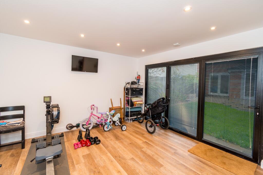 This is a three-bedroom semi-detached house in Upper Shirley, Southampton. The property is in good condition and has a modern kitchen and bathroom. It also has a garden with a lawn and a patio area, as well as an outbuilding that could be used as an office or gym. The property is located close to local schools and transport links. The property is listed for £525,000, which is slightly above the average price for a property in the area.