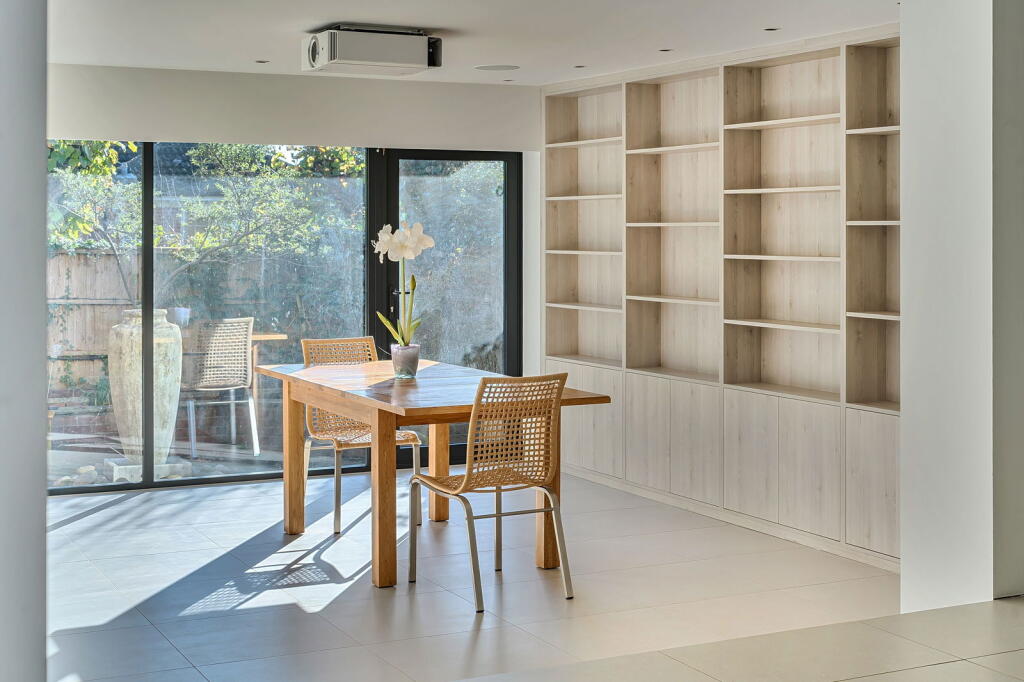 This is a detached property located on Sleepers Hill, Winchester. The property has 6 bedrooms and 5 bathrooms. The property is in excellent condition, with modern fixtures and fittings. The property has a well-maintained garden with a water feature. The property is located in a desirable area, close to good schools and transportation links. The property is listed for £1,800,000, which is significantly more expensive than other properties in the area. The property also features a garage, patio and ensuite.