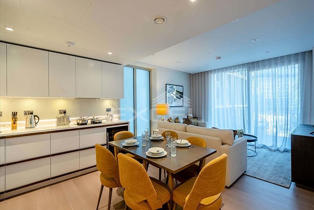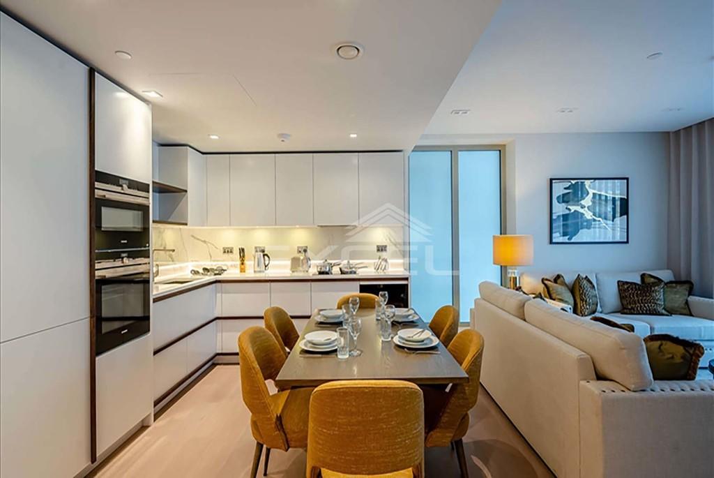 <strong></strong> <strong></strong> A luxurious interior designed Three-bedroom 3rd floor apartment set over 1021 SqFt comprising a large open-plan reception room leading onto a private balcony. The fully integrated kitchen with appliances from Siemens and Miele including oven and induction hobs, large fridge freezer and dishwasher and wine chiller all inset into a composite stone work tops. The whole apartment also benefits from comfort cooling.<br /><br />The apartment has two double bedrooms with the master including an En-suite and a family bathroom. This apartment comes complete with large Samsung Smart TVs and Samsung sound bar and is offered with full use of the onsite facilities including Gym, pool, residence lounge area, privet dining room, conference facilities, 24 hour concierge and Cinema room. The apartment is ready to move into with internet already connected.