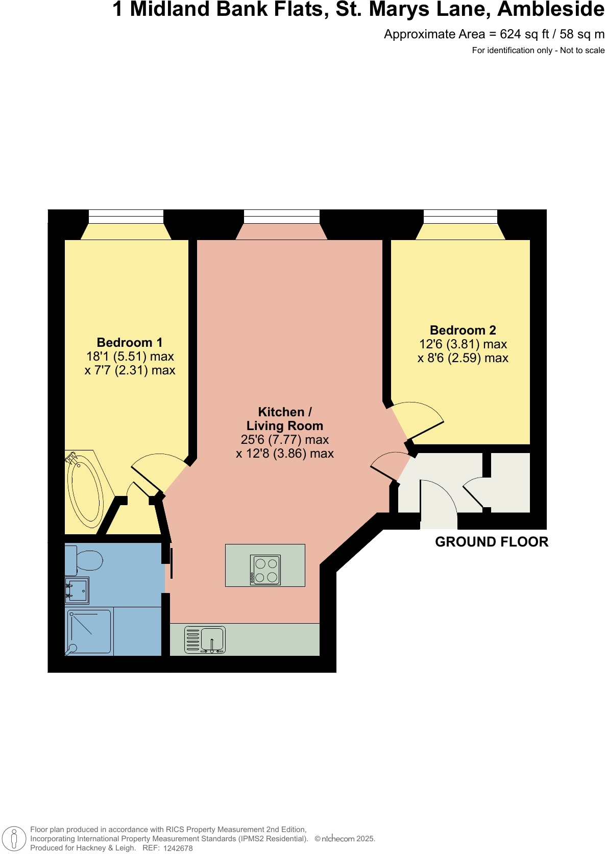 This immaculate first floor apartment is superbly placed with everything which Ambleside has to offer virtually on the doorstep. 2 double bedrooms (one with a luxury freestanding bath) an elegant open plan living space and a stylish house shower room - everything you need and more.