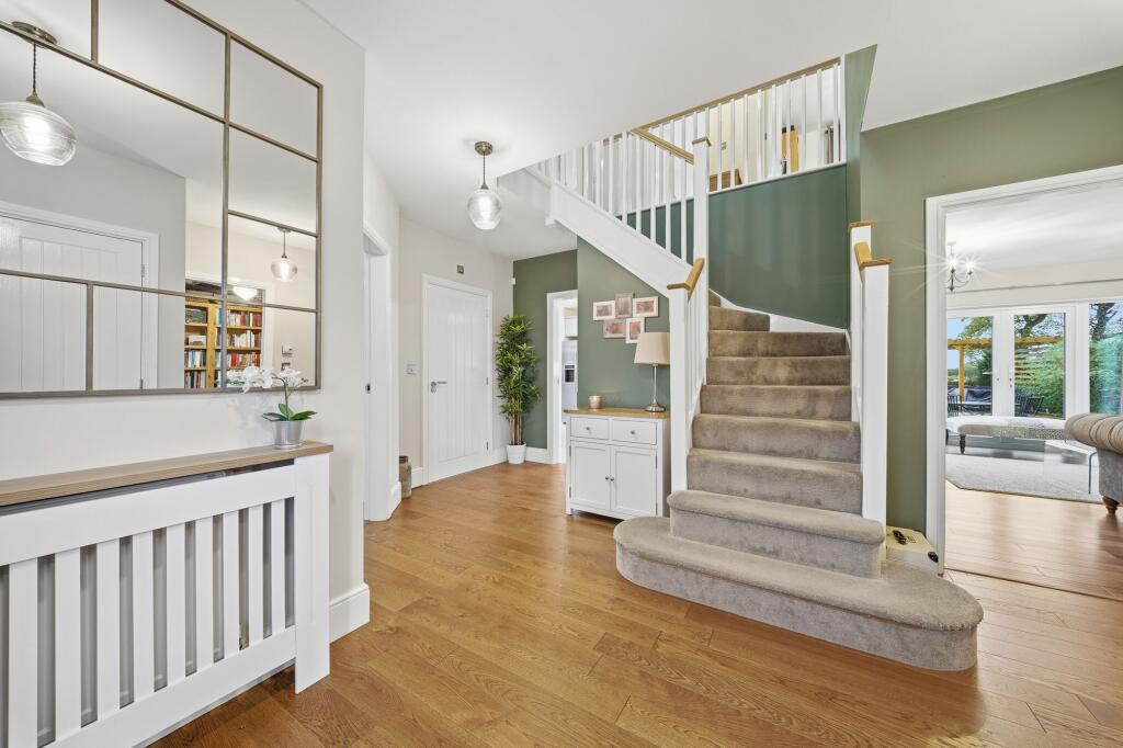 Exceptional 5-bed, 3-bath family home in immaculate condition with open views. 2,000 sq. ft. of space incl. 2 receptions, study, and modern kitchen diner, utility room. Landscaped gardens, ample parking, double garage. Ideal for families seeking quality living in a semi-rural setting.