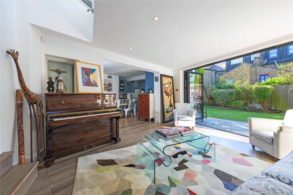This 5-bedroom, 3-bathroom house on Garfield Road, SW11, presents a compelling opportunity within the London property market. The property’s location in a sought-after area near Clapham Common offers convenient access to green spaces, highly-rated schools, and multiple transportation links. The property itself appears to be in good condition, with a recently extended rear providing modern and spacious living areas. The kitchen and living space are well-integrated and benefit from ample natural light and access to the garden. The inclusion of a garden is a significant advantage in a city setting. The photographs showcase a stylish interior, though the styling may not appeal to all buyers. There is no information regarding the plot size, so an assessment of land value cannot be provided accurately. Overall, the property presents a solid family home in a desirable location, though potential buyers should independently verify the price per square foot in comparison to other recently sold properties in the area to determine value for money.