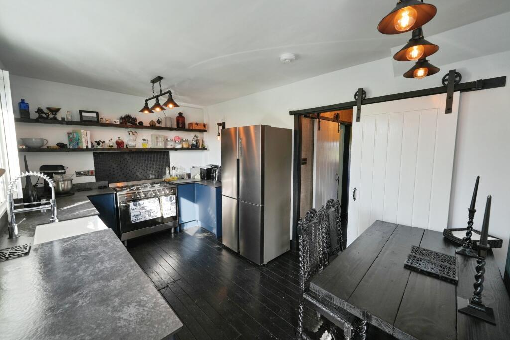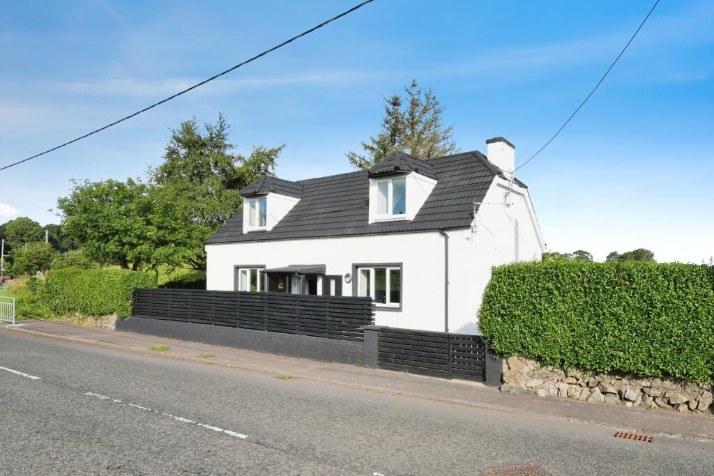 This is a detached property located in Cumnock, East Ayrshire. It features two bedrooms and two bathrooms. The interior presents a modern aesthetic, and the property includes a garden. The listing price is £195,000.
